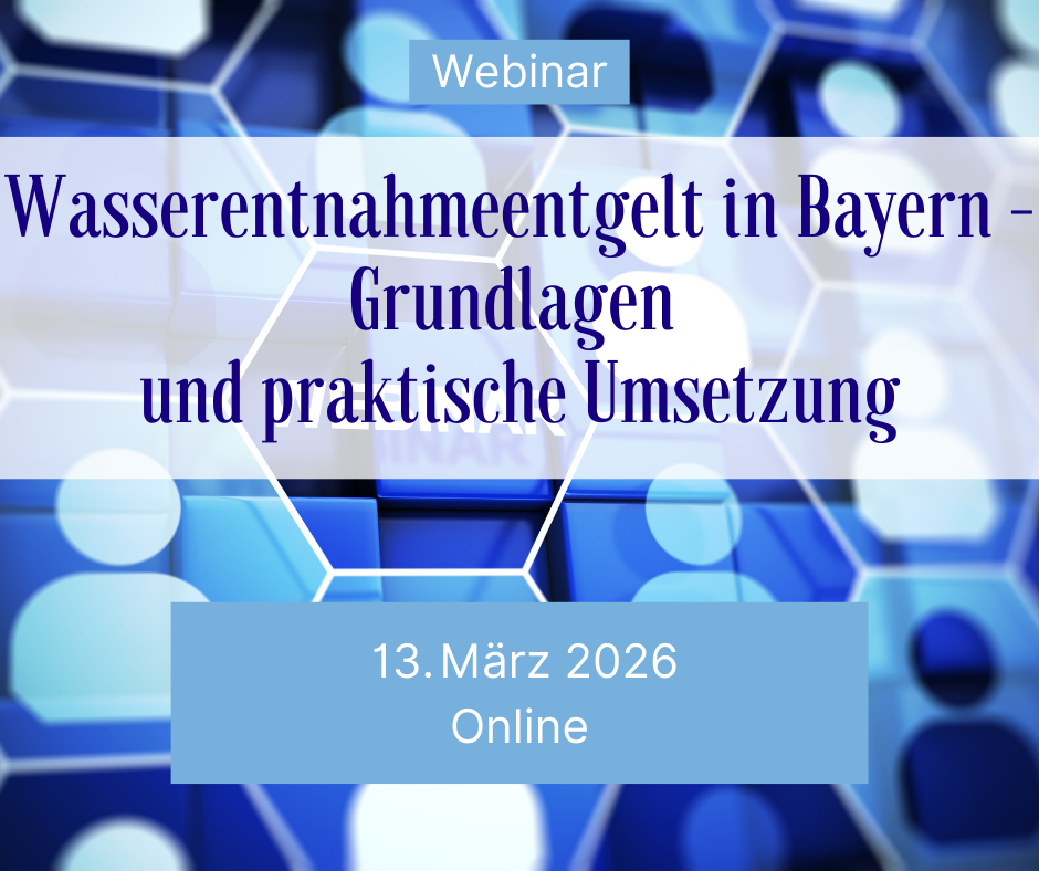 Hier geht es um die praktische Umsetzung. Das Webinar richtet sich vornehmlich an Wasserversorger, die das zum 1.7.2026 eingeführte neue Wasserentnahmeentgelt auf die Gebühren und damit auf die Bürger umlegen müssen.
